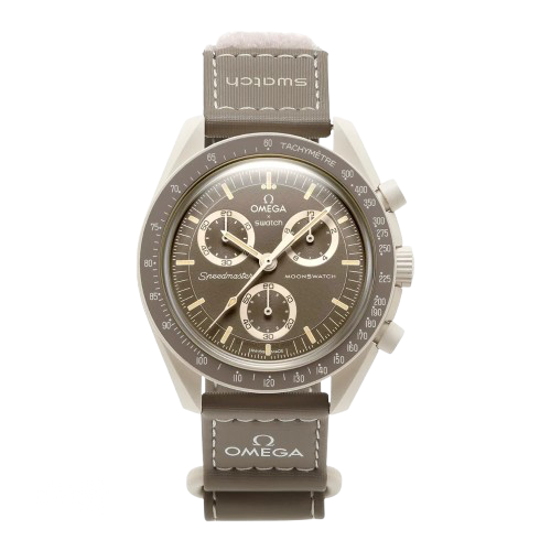 Inspired by the historic Moonwatch, the Mission on Earth model embodies the spirit of exploration and innovation. The chronograph features dynamic subdials and space-age design cues, reminiscent of pioneering missions into the cosmos. Complemented by Swatch’s precision quartz movement, it ensures accurate timekeeping while staying true to the design elegance synonymous with Omega’s revered Moonwatch lineage.